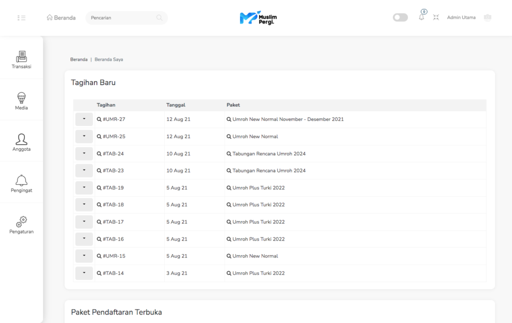 Untuk membuat paket perencanaan keberangkatan baik itu umroh ataupun haji, Admin Biro Travel perlu masuk ke dashboard admin terlebih dahulu.