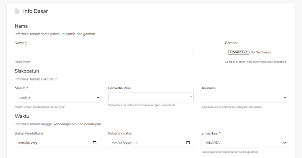 Setelah masuk ke halaman form pembuatan paket, isi kolom informasi paket seperti biasa.