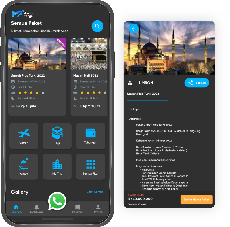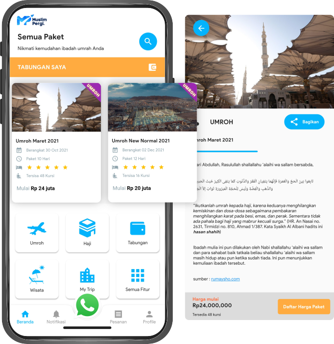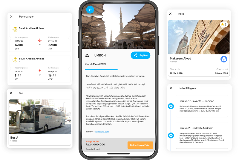 Cukup dengan aplikasi ini, calon jama’ah anda akan sangat terbantukan karena paket – paket yang ada disajikan dengan detail dan mudah dipahami.