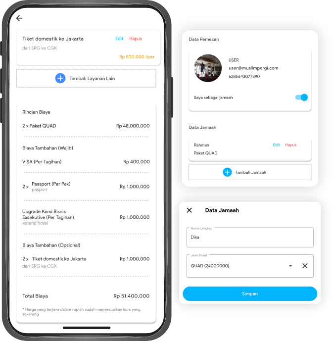 Jama'ah bisa membantu mendaftarkan jamaah nya dengan fitur booking yang sudah aplikasi ini sediakan.