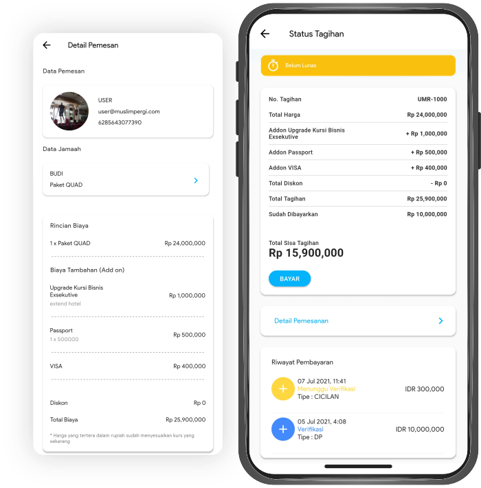 Jamaah dimudahkan memperoleh data pembayaran dan semua tertulis lengkap di aplikasi ini.
