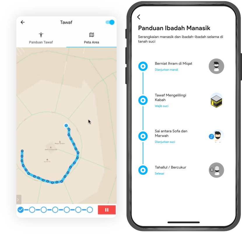 Sekarang, Biro Umroh anda sudah bisa memberikan kemudahan bagi para jamaah umrohnya ketika melakukan perjalanan Ibadah Umroh. Melalui fitur Panduan Manasik, setiap jamaah dapat mempelajari seluruh rangkaian dari mulai berniat ihram di Miqat, penghitung jumlah Thawaf otomatis, panduan do’a Sa’i, hingga Tahallul.⁣