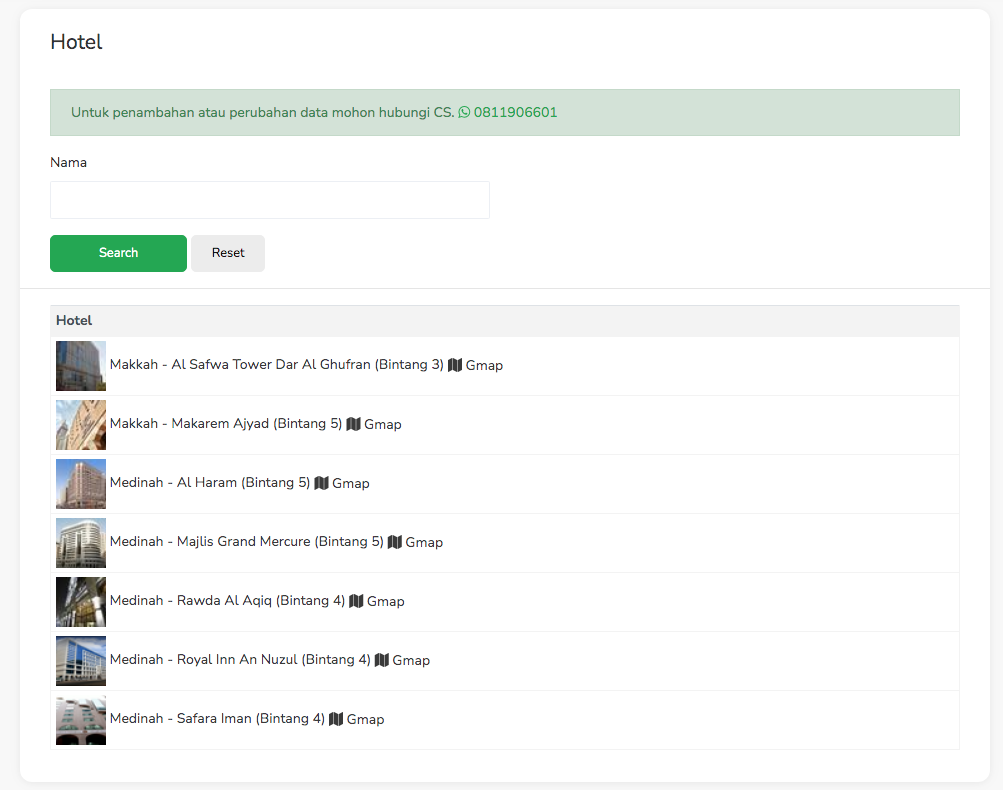 Admin Main bisa menambahkan mengedit dan menghapus data hotel yang digunakan oleh jama’ah untuk menginap.