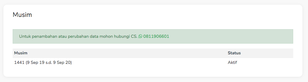 Terdapat musim yang dijadwalkan oleh customer service jika ada perubahan dan penambahan maka admin harus menghubungi customer service.