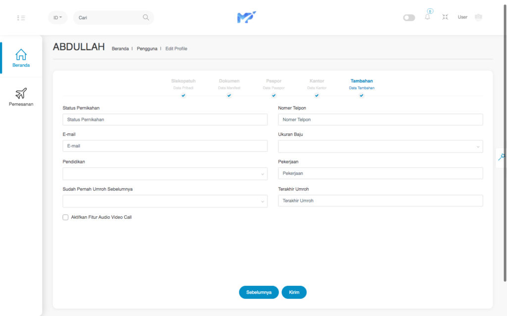 Jika anda memesan paket yang berupa umroh dan haji maka anda harus memasukan sejumlah data yang diperlukan